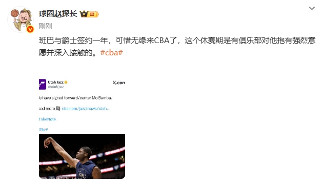 班巴与爵士签约一年,可惜无缘来CBA了,这个休赛期是有俱乐部对他抱有强烈意愿并深入接触的。