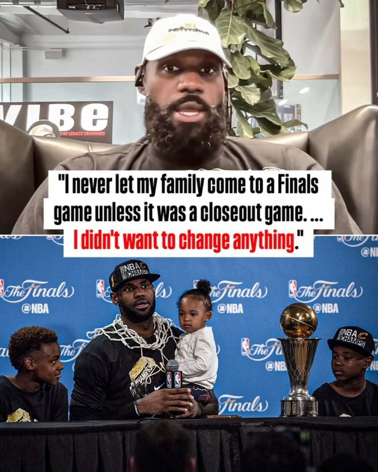 詹姆斯说:“就我个人而言,我从不让我的家人到场观看总决赛比赛,除非那是一场冠军点的比赛。如果我们3-1领先,或者3-3打平,就像2016年打到抢七,我的家人在抢七之前不会出席比赛。我不想改变任何事。当然,如果我们有机会终结系列赛,最后那场比赛,如果我们即将拿下第四胜,我们有机会做到,那么家人会到场。但除此之外的比赛,我让他们待在家里。
