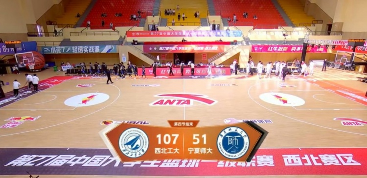 次节回来,场上情况没有丝毫改变,前三分多钟的时间里宁夏师大一分未得,西北工大轰出一波11-0将分差扩大到三十分以上,这一节宁夏师大的得分下降到6分,半场战罢,西北工大62-15领先宁夏师大。