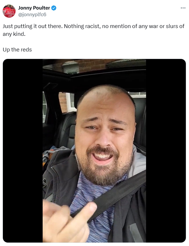 然而,涉事的利物浦球迷乔尼-波尔特在社交媒体上发布了一段视频,指责马竞的一名教练员向他吐口水:“关于昨晚西蒙尼的事情,我想澄清一下,我认为他有点懦弱。他在赛后发布会上被问及是否涉及种族歧视或福克兰群岛战争等话题时,他没有回答就离开了,这让人产生了很多猜测。”