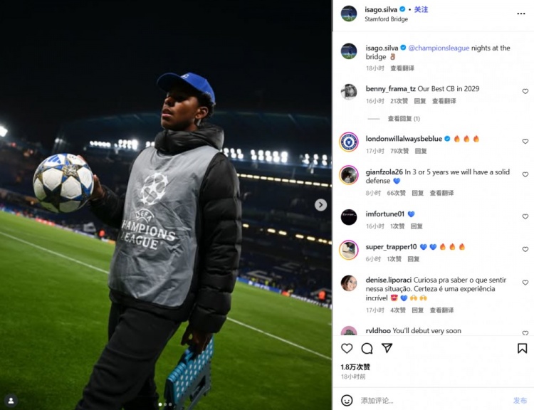 伊萨戈在社交媒体上分享了几张自己在斯坦福桥担任球童的照片,如果他未来真能成为一线队的成功球员,这些照片将成为值得回顾的美好记忆。他的父亲蒂亚戈早在2023年就曾表示,看到自己的儿子有朝一日为蓝军效力是他的梦想之一。