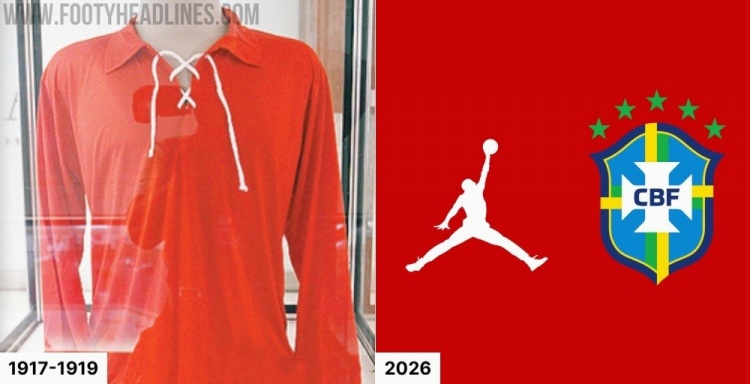 4月29日讯 著名足球装备网站FootyHeadlines发布了巴西国家队2026年世界杯客场球衣谍照,这套球衣使用对桑巴军团来说非常罕见的红色配色,但FootyHeadlines表示,巴西其实在100年前就穿过红色球衣。