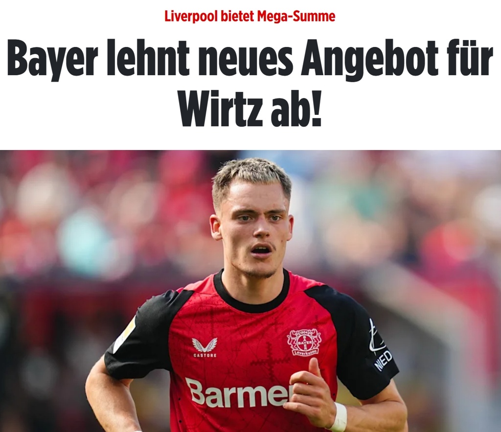 06月02日讯 德媒《图片报》确认,勒沃库森拒绝了利物浦对维尔茨的第二份报价,总价1.3亿欧元!